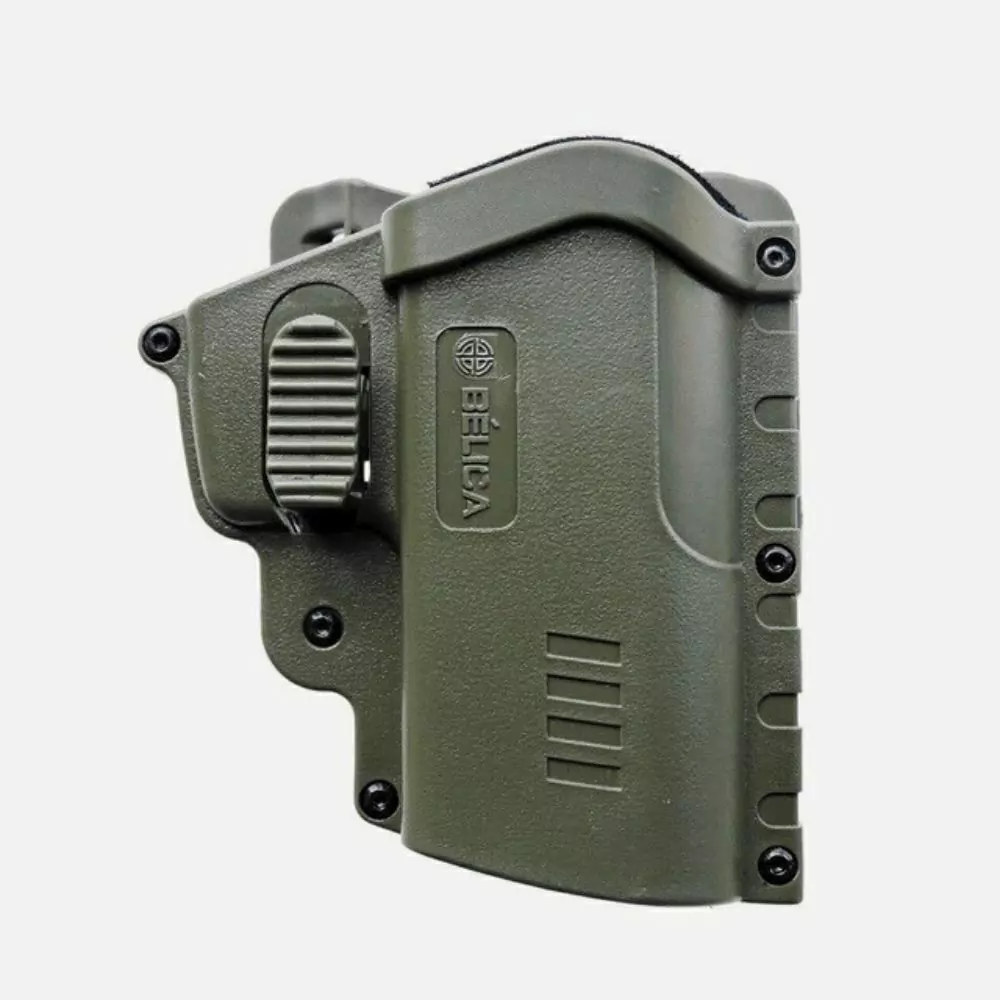 O Coldre Eagle I Passador possui uma plataforma totalmente confortável, flexível e resistente, que se adapta ao seu corpo e permite um saque rápido e eficiente. O revestimento interno em couro protege sua arma contra o atrito e o desgaste, garantindo sua durabilidade e desempenho. Além disso, ele acompanha um adaptador de cintura com passador de cinto, que facilita a fixação do coldre e oferece mais estabilidade e firmeza. Características:Trava de retenção ativa com saque rápido, proporciona maior agilidade e segurança no saque;Acompanha adaptador de guarda-mato ampliando a compatibilidade de pistolas;Injetado em polímero de alta performance e resistência;Revestimento interno em couro para proporcionar maior proteção, diminuir o atrito entre arma e o coldre, evitando o desgaste de ambos;Possui trava de segurança, que pode ser liberada no exato momento do saque da arma. Passador:Totalmente confortável, flexível e resistente;Possui fixador de cinto fixado no coldre por catraca;Catraca rotativa que possibilita a rotação do coldre, para ajuste do ângulo e maior conforto no manuseio do equipamento;Acompanha adaptador de cintura com passador de cinto;Passador de cinto de até 55mm. Compatível com:Taurus G2CTaurus 24/7Taurus PT 609Taurus PT 638Taurus PT 640Taurus PT 738Taurus PT 740Taurus PT 809 CTaurus PT 809Taurus PT 840Taurus PT 845Taurus TH 9Taurus TH 380Taurus TH 40Taurus PT 92 (sem trilho picatinny) Itens inclusos:01 Coldre Eagle;01 Passador de cinto;01 Chave para ajuste. Medidas Aproximadas do Coldre:Comprimento: 11,5 cmLargura: 10 cmEspessura: 4,5 cmPeso: 0,190g Medidas Aproximadas do Passador:Comprimento: 7,5 cmLargura: 9,2 cmEspessura: 2,2 cm