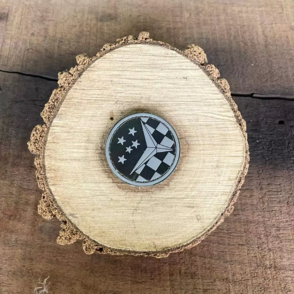 Os distintivos plastificados ou ( emborrachados como são conhecidos) são confeccionados em PVC, pelo processo de moldagem a quente, na cor cinza, sobre um suporte imitando tecido de padronagem camuflada e aplicado por meio de fecho de contato na cor verde.