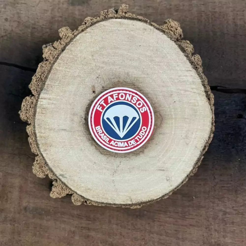 Os distintivos plastificados ou ( emborrachados como são conhecidos) são confeccionados em PVC, pelo processo de moldagem a quente, na cor vermelha, se aplicado por meio de fecho de contato na cor verde.Acompanha velcro fêmea e macho na parte posterior.Dimensões aproximadas:Circunferência: 4,5 cmAS IMAGENS DOS PRODUTOS SÃO MERAMENTE ILUSTRATIVAS E AS CORES APRESENTADAS PODEM SOFRER VARIAÇÕES DE TONALIDADE DE ACORDO COM A CONFIGURAÇÃO DO MONITOR.