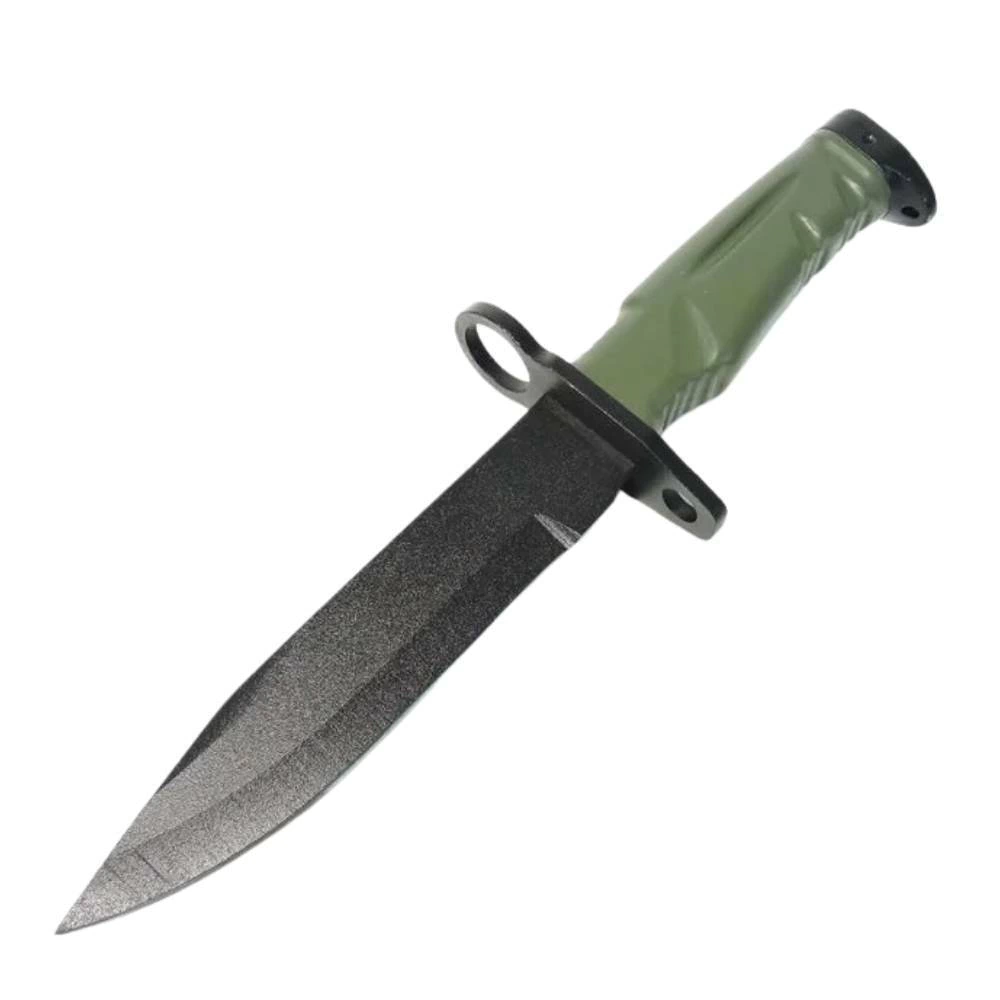 A Faca Baioneta M9 Bélica é o seu equipamento para uso em missão de campo e algumas atividades de sobrevivência e bushcraft. Possui cabo anatômico na cor verde para conforto e acabamento em micro pintura para manter a lâmina sempre protegida.?Detalhes do Produto:- Material: Lâmina em Aço Temperado 1045- Peso (com bainha): 1,119kg- Lâmina (comprimento): 17,5 cm- Área do Fio (comprimento): 14,8 cm- Largura da Lâmina: 3,3 cm- Espessura da Lâmina: 5 mm- Cabo (comprimento): 12,3 cm- Cor do Cabo: Verde- Total: 29,8 cm- Estilo: Hidden Tang- Lâmina com têmpera integral- Bainha em polímero com passador de cinto acoplado- Bainha possui cordão de velame para fixação na perna- Grampo de fixação para cinto N.A.- ?Acompanha bainha ambidestra verde- Acompanha caixa exclusiva em madeiraAS IMAGENS DOS PRODUTOS SÃO MERAMENTE ILUSTRATIVAS E AS CORES APRESENTADAS PODEM SOFRER VARIAÇÕES DE TONALIDADE DE ACORDO COM A CONFIGURAÇÃO DO MONITOR.