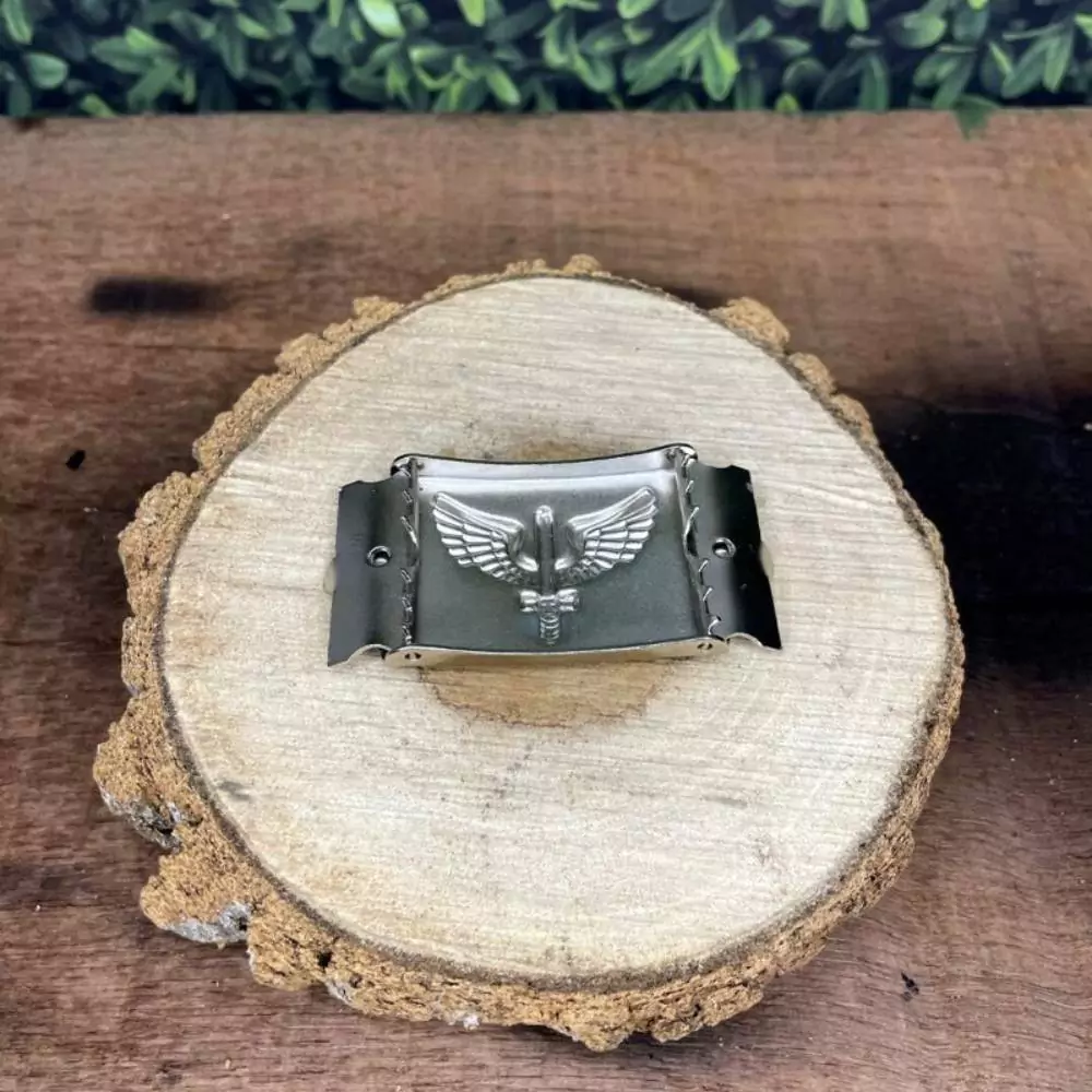Fivela composta por duas presilhas articuladas em seu interior, que permitem a fixação da fita do cinto e também o seu fechamento.Detalhes do Produto:- Possui o símbolo da aeronáutica em alto relevo no centro.- Produzida em Metal.- Ideal para ser utilizada com o cinto polipropileno 3,5 cm de largura.Medidas Aproximadas:- Largura: 3,5 cm-Comprimento: 6,0 cmAS IMAGENS DOS PRODUTOS SÃO MERAMENTE ILUSTRATIVAS E AS CORES APRESENTADAS PODEM SOFRER VARIAÇÕES DE TONALIDADE DE ACORDO COM A CONFIGURAÇÃO DO MONITOR.