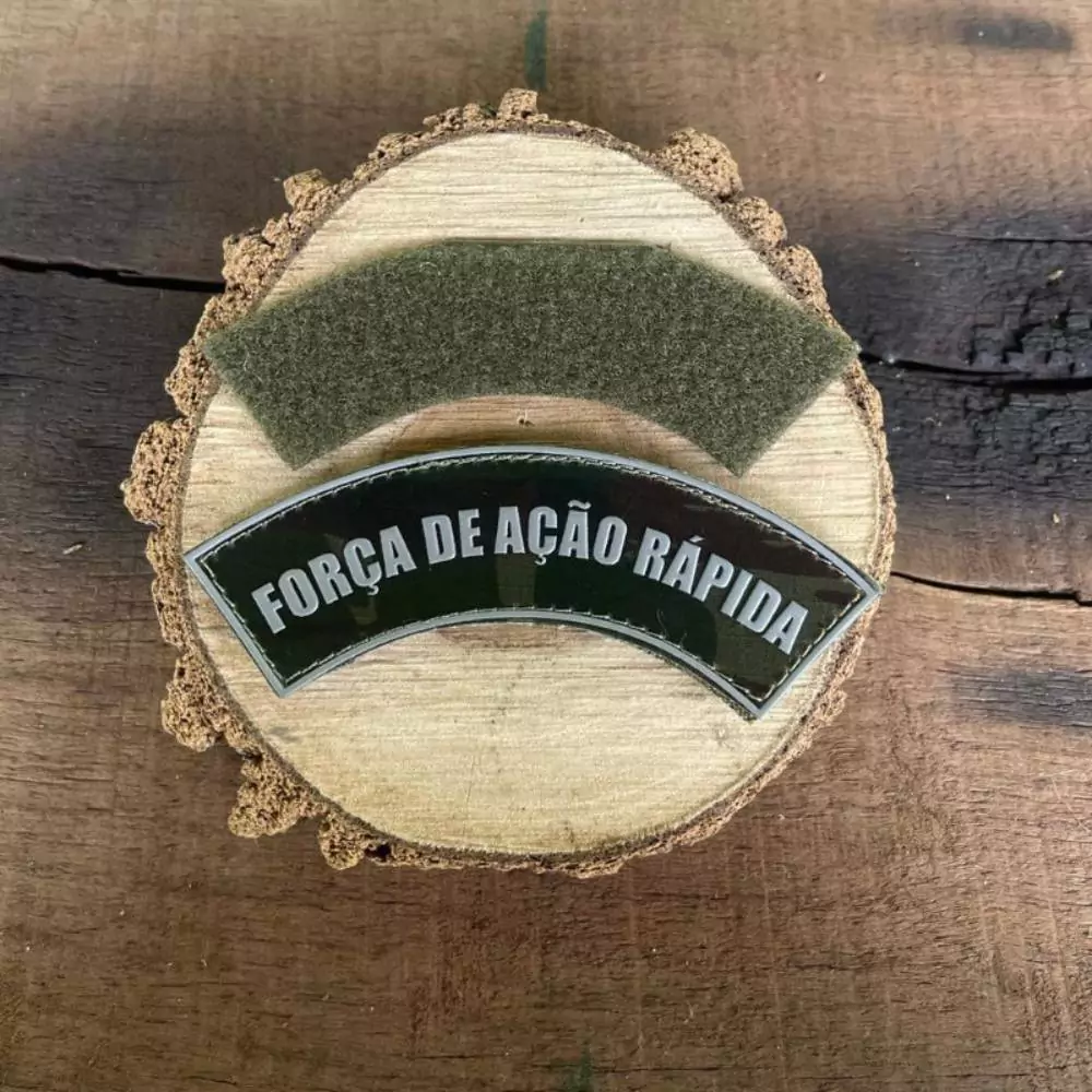 O distintivo emborrachado é utilizado na blusa de combate (Gandola),na blusa de combate camuflada leve e também nos macacões de manutenção e de guarnição de viatura blindada.