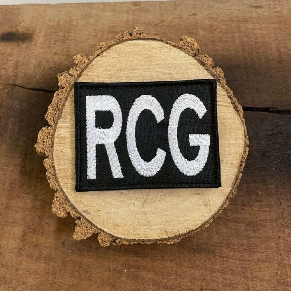 O distintivo bordado é confeccionado em tecido na cor preta, com a inscrição RCG em letras brancas. Padrão RUE. É aplicado por meio de fecho de contato.Indicação de uso:- Na blusa de combate camuflada (gandola), na blusa de combate leve (gandoleta), colocar no centro do fecho de contato (velcro) do bolso da manga direita.- Na japona de campanha (camada externa) e no macacão de combate. Colocar no centro do bolso da manga direita.Medidas Aproximadas:Altura: 7,0 cmLargura: 9,0 cmAS IMAGENS DOS PRODUTOS SÃO MERAMENTE ILUSTRATIVAS E AS CORES APRESENTADAS PODEM SOFRER VARIAÇÕES DE TONALIDADE DE ACORDO COM A CONFIGURAÇÃO DO MONITOR.